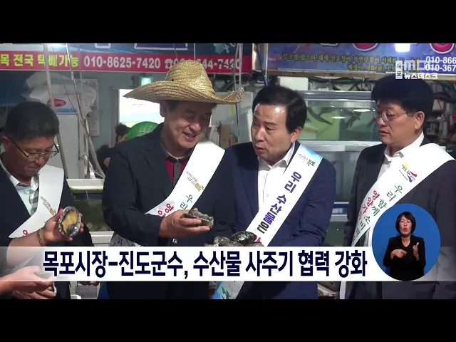 박홍률 목포시장과 김희수 진도군수가 오늘 진도수산시장을 방문해 수산물 사주기 행사를 펼쳤습니다. 박 시장과 김 군수는 최근 일본 후쿠시마 오염수 방류로 수산물 소비가 위축되면서 어려움을 겪는 수산인을 돕기위해 합동 행사를 갖게 됐다며, 수산물 가격 안정과 소비 활성화 분위기를 높이는데 노력하기로 했습니다...