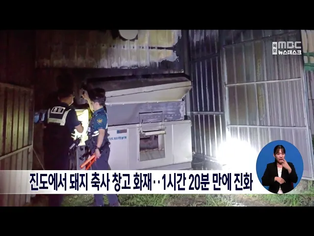 진도에서 돼지 축사 창고 화재..1시간 20분만에 진화