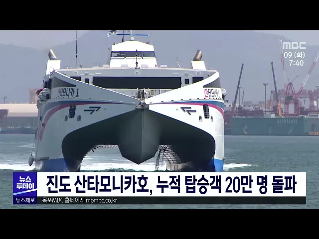 진도와 제주를 오가는 '산타모니카호'가 취항 1년만에 누적 탑승객 20만 명을 돌파했습니다. 지난해 5월 7일 운항을 시작한 산타모니카호는 하루 2회 진도와 제주를 왕복 운영하고 있으며, 취항 1년을 맞아 헌혈자 운임 할인과 승선 인증 경품 행사 등 다양한 이벤트가 열릴 예정입니다.
