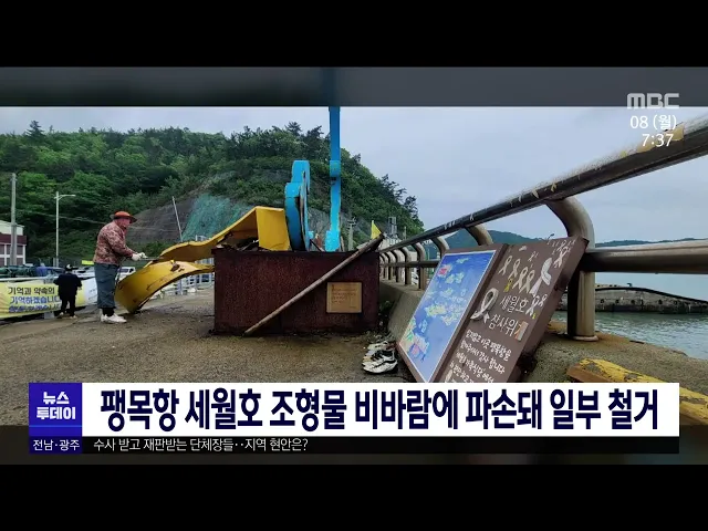 세월호 참사 희생자들을 기리기 위해 진도 팽목항에 설치된 세월호 조형물이 강한 비바람에 파손돼 일부 철거됐습니다. 광주 세월호 시민상주모임과 4.16가족협의회는 지난 5일 진도 지역에 강풍이 불면서 조형물이 파손됐으며 안전을 위해 받침대만 남긴 채 철거하고 추후 다른 상징물 설치를 논의하겠다고 밝혔습니다. 철...