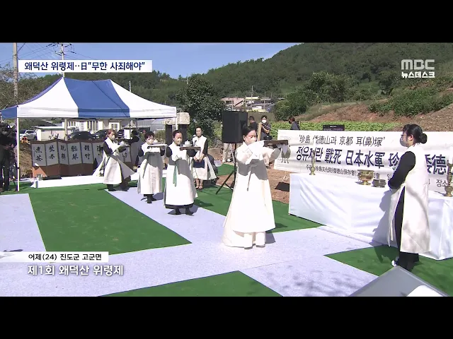 ◀ANC▶ 일본의 과거사 사과 문제로 한일간 갈등이 해소되지 않고 있는데요 425년 전 명량해전 당시 전사한 왜군들의 무덤이 있는 진도 왜덕산에서 한일 공동 위령제가 처음으로 열렸습니다. 신광하 기자가 보도합니다. ◀VCR▶ 햇볕이 잘드는 산비탈을 따라 수십기의 무덤이 배치됐습니다. 1597년 명량해전 때 울돌목에...