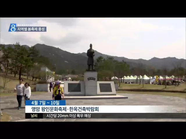 4월 들어 봄축제가 도내 곳곳에서 잇따라 열립니다. 지난 1일부터 완도 청산도에서는 슬로우 걷기축제가 한 달 동안 이어지고 있고 내일(7일)부터 나흘 동안 영암왕인문화축제와 진도 신비의 바닷길축제가 열립니다. 목포와 신안에서는 오는 8일부터 꽃피는 유달산축제와 튤립축제 마당이 각각 나흘과 열흘 동안 펼쳐지고 ...