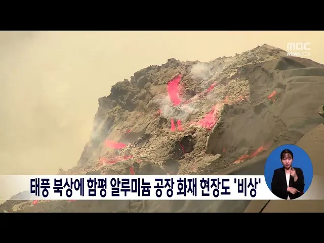 태풍 '카눈' 북상에 함평 알루미늄 공장 화재를 진화중인 소방당국도 긴장하고 있습니다. 지난 5일 새벽, 함평군 대동면의 한 알루미늄 공장 야적장에서 불이난 가운데 소방당국은 나흘째 진화작업을 벌이고 있지만 물에 닿으면 발화하고 불이 잘 꺼지지 않는 알루미늄 특성 때문에 진화에 어려움을 겪고 있습니다. 소방당...