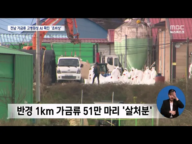 ◀ANC▶ 전남지역 가금류 농장에서 최근 고병원성 AI 확진이 잇따르고 있습니다. 날씨가 추워지면서 방역에도 어려움을 겪고 있는데 AI의 급속한 확산이 우려되고 있습니다. 양정은 기자가 취재했습니다. ◀END▶ ◀VCR▶ 250마리의 닭이 집단 폐사한 전남 함평 한 양계장 최근 고병원성 AI 확진 판정을 받으면서 해당 ...