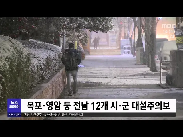 ◀ANC▶ 하루사이 기온이 뚝 떨어지면서 전남지역에 눈이 내리고 있습니다. 북서쪽에서 찬공기가 내려오면서 대설 주의보가 내려진곳도 있습니다. 박종호 기자가 연결해보겠습니다. 박 기자 지금 상당히 추워보이는군요? ◀END▶ 네, 집 밖을 나서실때 준비 단단히 하셔야겠습니다. 오늘 새벽부터 전남지역에는 많은 눈이...