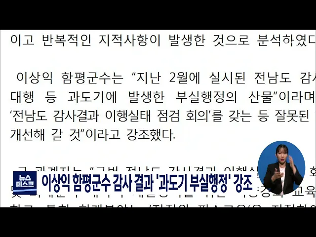 함평군이 최근 전라남도 감사결과에 대해 보도자료를 내고 이례적으로 이상익 함평군수와는 무관함을 강조했습니다. 함평군은 보도자료를 통해 "지난 2월에 실시된 전남도 감사결과는 군수권한대행 등 과도기에 발생한 부실행정의 산물"이라며 "앞으로 철저히 개선하겠다"고 밝혔습니다. 전라남도는 지난 2017년부터 올해 ...