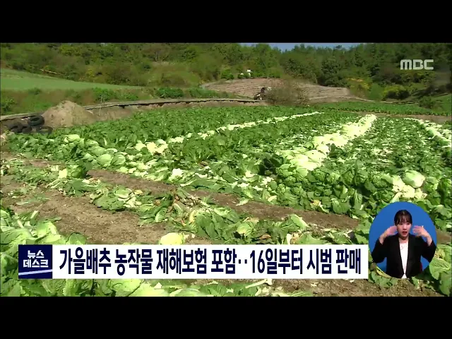농림축산식품부는 해남과 충북 괴산, 경북 영양 등 3곳의 가을배추를 농작물 재해보험 대상에 포함해 오는 16일부터 지역 농협을 통해 시범 판매하기로 했습니다. 가을배추는 배추 품목 중 재배면적 비중이 가장 큰 품종으로 8월 중순에 파종해 12월 중순까지 수확하는 품종으로 해남과 괴산 등 주산지에서 재해보험 대상...