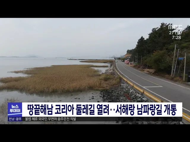 한반도의 시작점인 해남 땅끝에서 서해랑길과 남파랑 길 등 코리아 둘레길 마지막 구간이 개통됐습니다. 서해랑길은 해남 땅끝에서 인천 강화까지 이어지는 국내 최장 걷기 여행길로 109개 코스 천8백km로 구성돼 있습니다. 또 남파랑길은 땅끝탑에서 출발해 부산광역시 오륙도 해맞이 공원까지 남해안을 따라 연결된 천4...