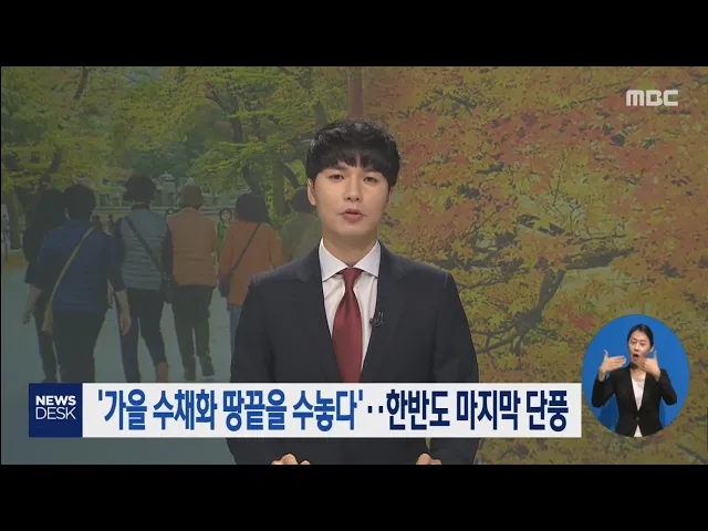 ◀ANC▶ 아침 저녁 기온이 뚝 떨어지면서 겨울 채비가 한창데요. 전남 땅끝에서는 단풍이 떠나는 가을을 붙잡고 있습니다. 남녘 땅끝을 수놓고 잇는 한반도 마지막 단풍 소식, 박영훈 기자가 전해드립니다. ◀END▶ 유네스코 세계유산에 등재된 대흥사를 품에 둔 전남 해남 두륜산. 천년가람으로 향하는 길은 오색터널로 ...