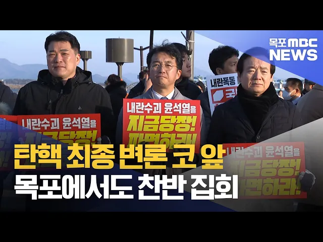 ◀ 앵 커 ▶헌정 최초 내란수괴 혐의를 받는윤석열 대통령의 탄핵심판이 최종 변론기일을 앞두고 있습니다.목포에서는 시민들이 매서운 날씨에도조속한 탄핵을 촉구하며 거리로 나섰는데,보수성향 기독교 단체의 탄핵 반대 집회도잇따라 열렸습니다.안준호 기자가 취재했습니다.◀ 리포트 ▶윤석열 대통령 탄핵심판의 최종 변론...