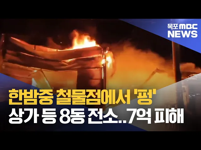 ◀ 앵 커 ▶어젯밤(24) 전남 해남의 한 철물점에서 불이 나 인근 주택과 상가 등 8개 동이 모두 탔습니다.상점과 주택에 있던 주민 십여 명도긴급 대피하면서 다행히인명피해는 없었습니다.김규희 기자가 보도합니다.◀ 리포트 ▶지붕 위로 희뿌연 연기가 솟구치고, 시뻘건 불길이 치솟아 오릅니다.소방 대원들은 호스로 연신 ...