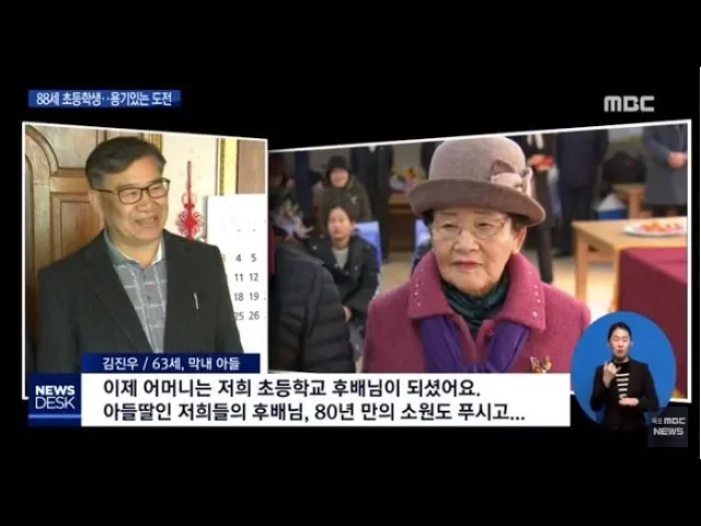 ◀ANC▶ 구순을 앞둔 88살 할머니가 자녀들이 졸업한 시골의 한 초등학교에 입학했습니다. 거리에 있는 간판을 큰 소리로 읽고 싶다는 할머니는 당당하게 배움의 각오를 밝혔습니다. 장용기 기자가 만났습니다. ◀VCR▶ 전남 해남에 살고있는 마정순 할머니. 여든여덟, 미수인 할머니 얼굴엔 설레임과 기대가 가득차 있습...