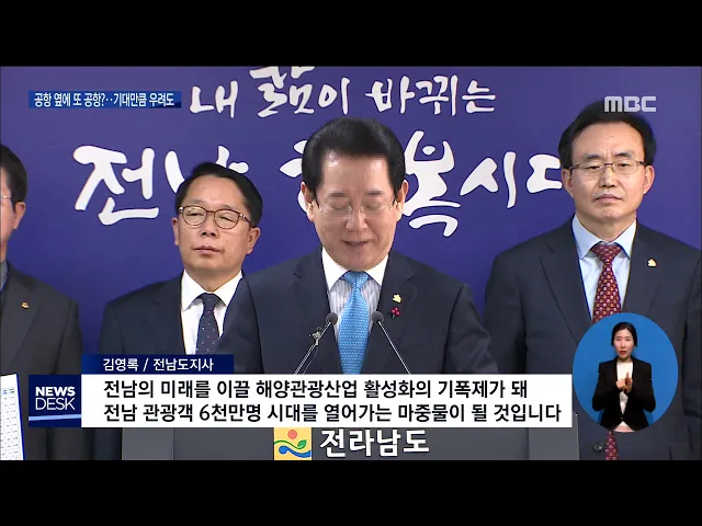◀ANC▶ 예비 타당성조사 면제 사업를 두고 전남은 대체로 환영하면서 만족해하는 분위깁니다 그러나 새만금 국제공항이 포함되면서 무안공항의 완전한 궤도 진입을 걱정하는 목소리가 나오는등 우려되는 문제도 제기되고있습니다 고익수 기자가 보도합니다 ◀END▶ 남해안 신성장 관광벨트 1단계사업의 하나인 신안 압...
