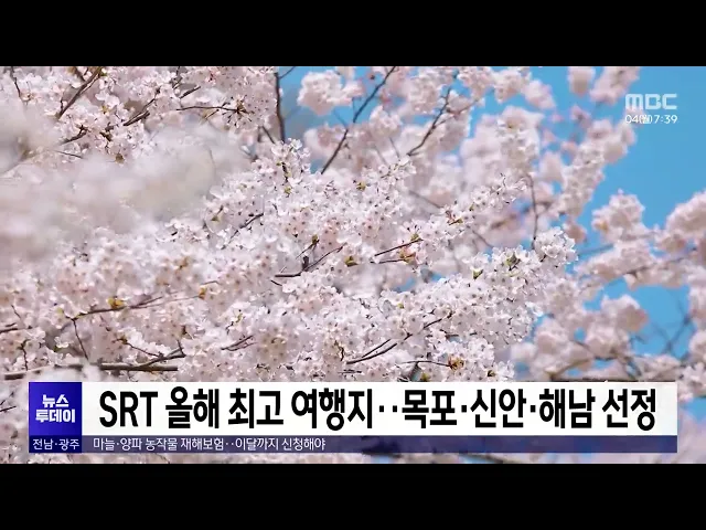 SRT가 꼽은 올해 최고 여행지에목포와 신안, 해남이 선정됐습니다.SRT 매거진은 지난 한 달간 독자 만여 명과 여행 작가 등 전문가를 대상으로 의견을 물은 결과, 국내 55개 지역 가운데 목포와 신안, 해남 등 10곳이 최종 선정됐다고 밝혔습니다.목포에서는 목포해상케이블카, 목포대교, 춤추는 바다분수가, 신안에서는 퍼...