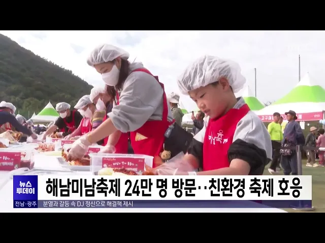 지난 주말 막을 내린 2024 해남미남축제에사흘 동안 24만 명이 방문했습니다.이번 축제에서는 지역 대표 특산물인고구마의 생육과정과 품종별 고구마 전시 등주제관이 운영됐으며전통장을 주제로 해남 14개 읍면의 장류와 음식을 선보여 관람객들의 눈길을 끌었습니다.특히 올해 행사는 축제장의 모든 음식점과판매부스 등...