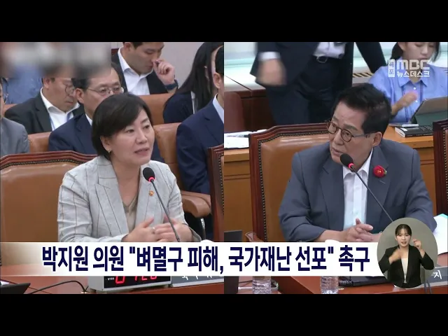 더불어민주당 박지원 국회의원이 벼멸구 피해에 대해 농업재해 인정과특별국가재난지역 선포를 요구했습니다.박 의원은 오늘(25)국회 법제사법위원회 전체회의 법안심사에서송미령 농식품부 장관에게 "벼멸구 피해는 농업재해에 해당하지 않는다는정부 말이 사실이라면 탁상공론"이라며특별국가재난지역 선포를 촉구했습니...