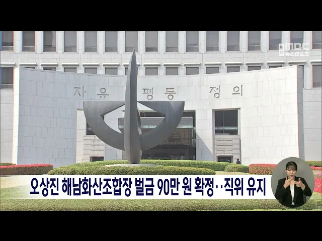 오상진 해남화산조합장 벌금 90만원 확정..직위 유지