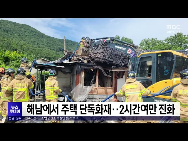 해남에서 주택 단독화재..2시간여만 진화