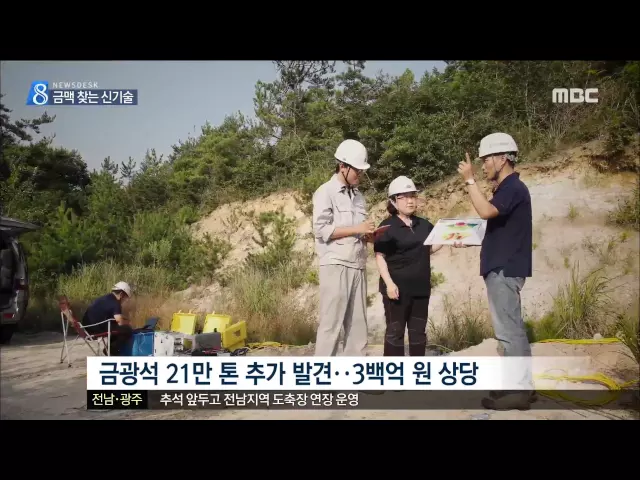◀ANC▶ 국내 금 생산은 해남과 진도 광산에서 소량에 그쳐왔는데요. 금맥을 찾는 신기술이 개발돼 땅 속에 묻혀있던 21만 톤의 금광석을 새로 찾아냈습니다. 문연철 기자가 보도합니다. ◀END▶ ◀VCR▶ 현재 국내에서 금을 캐는 광산은 해남 모이산과 진도 가사도 뿐입니다. 연간 생산량은 255킬로그램..수요에 비하면...