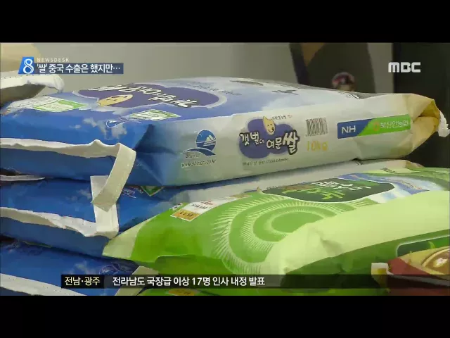 ◀ANC▶ 우리나라 쌀의 중국 수출은 쌀 소비 위축으로 시름에 빠진 농민들에게 희망이 될 것으로 기대됐습니다. 하지만 가격 경쟁력이 떨어지고 판로 확보가 어려워 중국 쌀 수출 효과는 크지 않아 보입니다. 김양훈 기자가 취재했습니다. ◀END▶ 올초 해남 옥천농협의 '한눈에 반한 쌀' 5톤이 중국에 첫 수출됐습니다. ...
