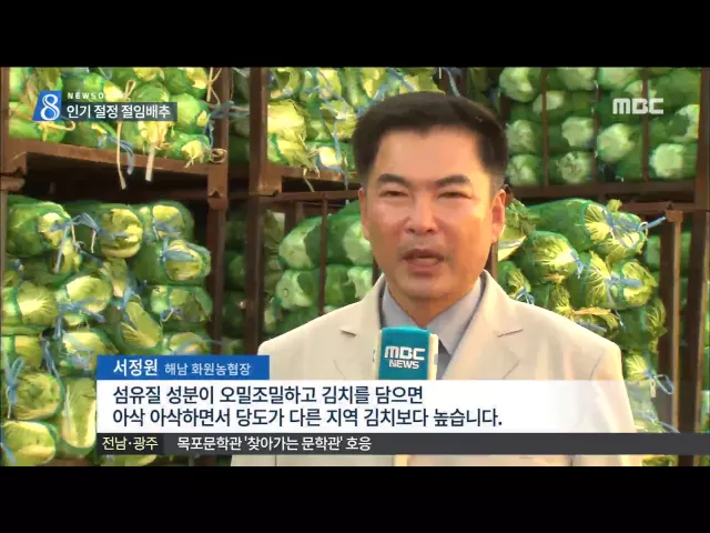 ◀ANC▶ 배추 주산지 하면 땅끝 해남이 먼저 떠오르는데요. 김장철인 요즘 해남은 전국 각지에서 절임배추 주문이 밀려들면서 즐거운 비명을 지르고 있습니다. 문연철 기자가 보도합니다. ◀END▶ ◀VCR▶ 국산 천일염에 절인 싱싱한 배추를 깨끗히 씻고 포장지에 담습니다. 요즘 간편함 때문에 큰 인기를 끌고 있는 절...