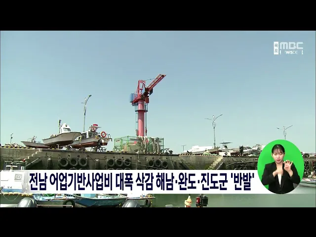 전남도의 내년도 어업기반정비사업 예산이 일부지역은 대폭 삭감된 반면 일부지역은크게 증가해, 논란이 일고 있습니다. 다목적 인양기 사업의 경우 진도군 62%, 해남군 40%, 신안군은 36%가 감소한 반면, 고흥군은 25% 증가했고복합 다기능 부잔교 사업에서도 진도군 예산은 삭감된 반면, 고흥군 예산은증가했습니다.이...