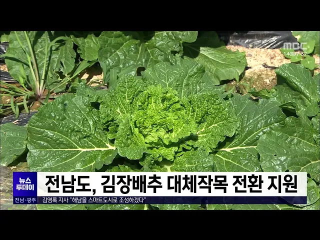 전라남도는 김장용 배추 수급 안정을 위해대체작목 전환을 지원합니다. 전라남도는 사전에 신청받은 해남과 진도 등 11개 시군 317헥타르에 보리와 밀, 유채 등의작물 재배를 유도하기로 했습니다. 지원금은 현장 확인 등을 통해헥타르당 450만 원이 지급될 예정입니다.