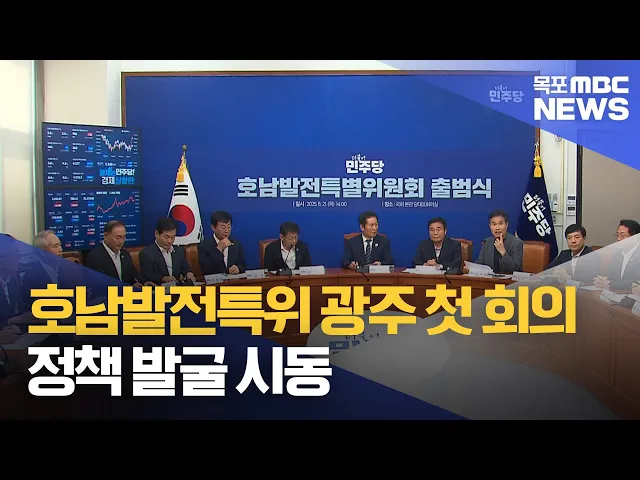 ◀ 앵 커 ▶더불어민주당 호남발전특별위원회가 광주에서 첫 회의를 열고 정책 발굴에 시동을 걸었습니다.특위는 올해 안에 가시적인 성과를 낸다는 방침입니다.윤근수 기자◀ 리포트 ▶지난주 전북에 이어 이번엔 광주입니다.일주일 전, 1차 회의에는 당 대표가 참석했지만 이번엔 광주지역 위원들을 중심으로 모였습니다.위원...