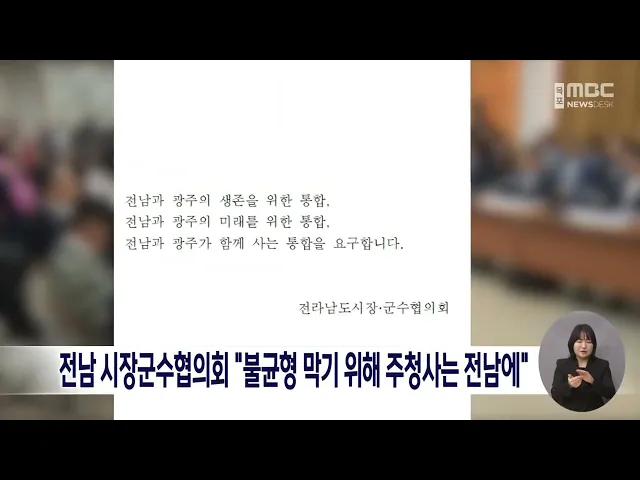 전남시장군수협의회가"새로운 불균형을 막기 위해통합 주청사가 반드시 전남에 있어야"한다고주장했습니다.전남시장군수협의회는 오늘(2) 입장문을 내고 "지방시대를 주도하는 통합, 권한을 재정립하는 분권형 통합이라는분명한 원칙 아래 광주 집중을사전에 차단할 제도적 장치가필요하다"며 이같이 밝혔습니다.특히 "김대...