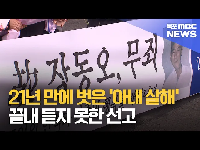 ◀ 앵 커 ▶'보험금을 노리고 아내를 저수지에 빠뜨려 살해했다'는 낙인이 찍힌 채,20여 년을 감옥에서 보낸 무기수 장동오 씨는긴 세월 억울함을 호소해 왔는데요.재심 법원이 오늘(11)당시 사고가 고의였다고 볼 증거가 부족하다며장 씨에게 무죄를 선고했습니다.재작년 급성 백혈병으로 세상을 떠난장 씨에게는 너무나 뒤...