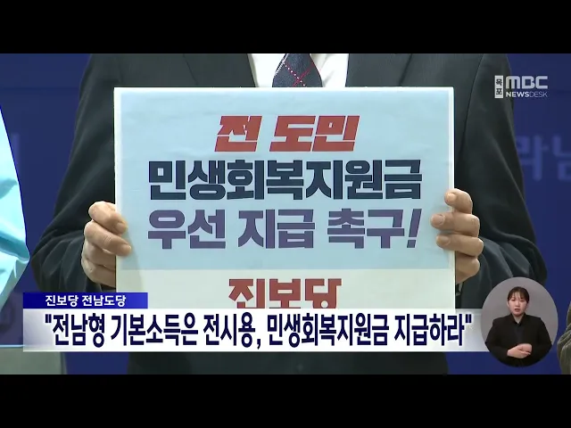 진보당 전남도당이 최근 제정된 '전남도 기본소득 기본 조례안'을규탄하며 "전라남도가 진정으로 기본소득을 도입할 의지가 있다면 지금이라도 전 도민에게 민생회복지원금을 지급하라"고 촉구했습니다.전라남도 기본소득 기본 조례안은전남도 자체 재원에 시군비를 매칭해영광군과 곡성군 주민에게 1인당 년 50만 원을 지...