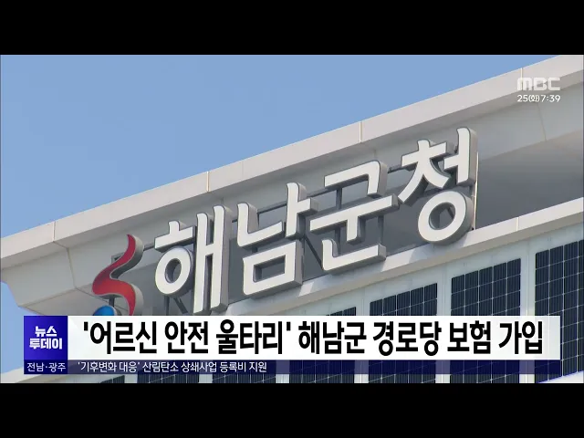 해남군은관내 597개소 전체 경로당을 대상으로화재보험과 손해배상책임보험에일괄 가입했다고 밝혔습니다.경로당은 사회복지사업법에 따라손해배상 책임보험에 의무 가입해야하지만개별 가입시 비용 부담 등의 어려움이 있어해남군은 지난 2019년부터 매년 누락없이전 경로당을 가입 처리하고, 보험금 청구도지원하고 있습...
