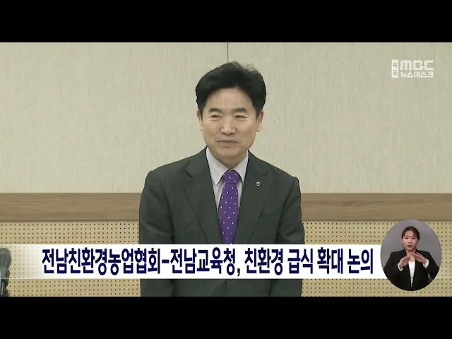 전남친환경농업협회가김대중 전남교육감과 정책간담회를 열고,친환경 급식 확대 방안을 논의했습니다.이번 간담회에는 전남도교육청과전남친환경농업협회 임원 등 20여 명이 참석한 가운데, 청소년 대상 친환경농업 교육과 스마트팜 기술 방안 등을 논의했습니다.특히 이들은 이번 간담회 논의 사항을 토대로 친환경급식 확...