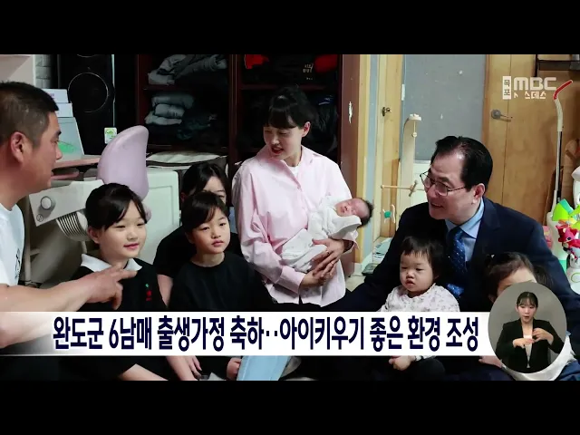 완도군은 오늘(22일) 보길면 백도리의 여섯째 아동 출생 가정을 방문해, 후원물품을 전달했습니다. 신우철 완도군은 아이키우기 좋은 환경을 조성하기 위해, 기관 사회단체가 모두 나서 출산과 양육을 지역사회가 돕는 사회적 분위기를 조성하자고 말했습니다. 완도군의 합계 추산율은 1.13명으로 전남 평균 0.97명 보다 ...