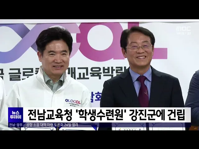 전남교육청은 오늘(18일) 강진군과 협약을 맺고, 가칭 전남교육청 다산학생수련원 건립을 추진하기로 했습니다. 강진군에 건설되는 다산학생수련원은 사업비 8백억원을 투입해 5백명이 합숙할 수 있는 시설과 캠핑장, 생존수영시설 등이 건립돼, 다산 정약용 선생의 독서인문교육과 문무 조화를 이룰 수련활동 중심의 교육...