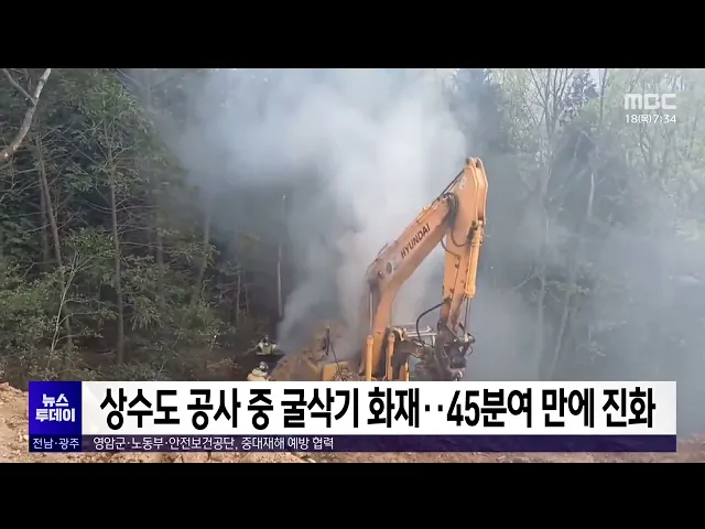 상수도 공사 중 굴삭기 화재..45분여 만에 진화