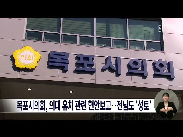 목포시의회 의대유치 특별위원회와 기획복지위원회는 오늘(17일) 목포시로부터 의대유치 관련 현안보고를 받고 유치방안을 논의했습니다. 시의회는 전라남도가 통합의대에서 단일의대 공모방식으로 갑작스럽게 변경한 배경에 강한 의구심과 함께 배신감을 토로했습니다. 또한, 전라남도가 2천21년 전남의과대 설립 운영방...