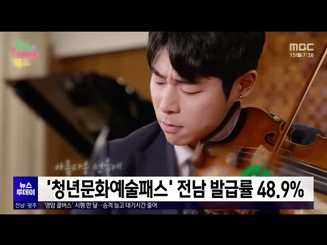 올해 19세가 되는 2005년생 청년에게공연과 전시 예매에 최대 15만 원을 지원하는 '청년문화예술패스'의신청이 잇따르고 있습니다. 지난달 28일 출범한 청년문화예술패스는현재까지 전국에서 8만여 명이 발급받은가운데, 전남에서는 대상자 가운데 48.9%가 발급받아 전국에서 5번째로높은 것으로 나타났습니다. 청년문화예...