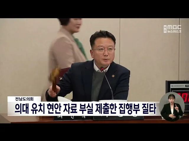 전남도의회 보건복지환경위원회는집행부가 의대 유치 관련 자료를 부실하게 제출했다며 강하게 비판했습니다전남도의회 보건복지환경위원회는집행부가 2021년 수행한 전남 의과대 설립 운영방안 연구용역 결과 등을 비공개에해당한다고 밝혔는데 이는 도민이 궁금해하는의대 유치 공모 전반에 대한 실체에 다가설 수없게 하...