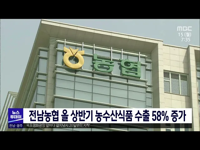 농협전남지역본부가 올 상반기에 1730만 달러의 농수산식품 수출 실적을 거뒀습니다. 이는 지난해보다 58점3% 증가한 것으로 배와 전복, 유자가공식품, 파프리카 등이 수출 신장세를 주도했습니다. 전남농협은 수출주도농협 33곳으로 결성된 광주전남농협수출협의회를 중심으로 해외시장 개척에 나서고 있습니다.