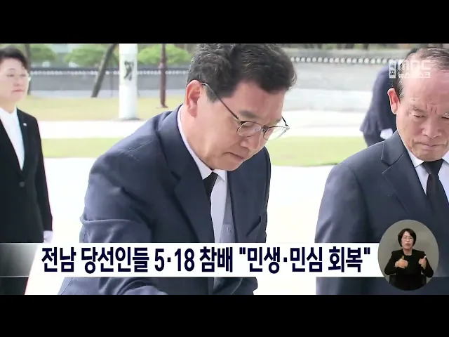 이번 총선 전남지역 당선인들은국립5.18민주묘지를 합동 참배하고 "벼랑끝의 민생경제를 살리고,민주주의를 회복하는 정치를 하겠다"고 다짐했습니다.당선인들은 참배 후 해단식을 열고 "무능하고 무책임하며 무대책인 윤석열 정권을 향한 국민들의 준엄한 심판을 겸허히 받들어 더 낮은 자세로 국민을 섬기고,정쟁보다 능...