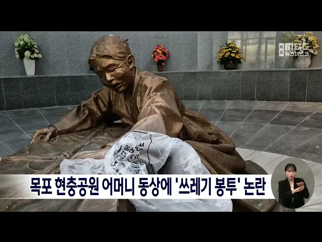 목포현충공원 어머니 동상에 '쓰레기 봉투' 논란