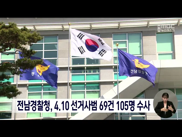 경찰이 제22대 총선 선거사범들에 대한 수사를 본격화합니다. 전남경찰청은 4*10총선과 관련해 69건 105명을 적발 인지하거나 신고를 받았으며 이 가운데 8건,11명의 수사를 종결하고 61건, 94명에 대한수사를 이어오고 있습니다. 전남에서는 이중투표 권유 의혹과허위사실 공표 등의 혐의 등에 대한 수사가 진행 중이며, 4...