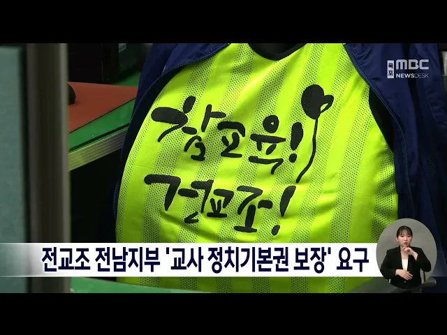 전교조 전남지부는 오늘(4일) 성명을 내고,제22대 총선 출마 후보들은 4월10일 총선이후 교사의 정치 기본권 보장을 적극 추진하라고요구했습니다. 전교조는 "현행 법이 교사가 SNS에 공감표현 조차 못하도록 하는 '투명인간'으로 취급하고 있다"며, "16세의 고1학년도 정당 가입이 가능하고, 18세 고3은 국회의원 출마도 ...
