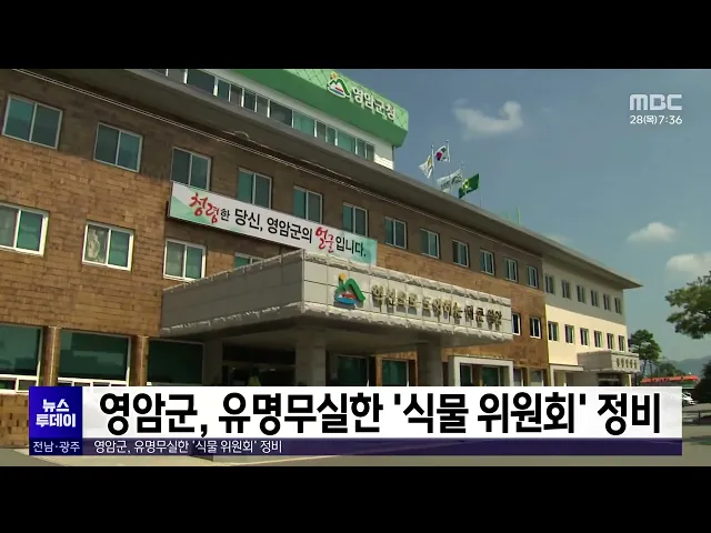 영암군이 유명무실한 '식물 위원회'에 대한 정비에 나섭니다.영암군은현재 운영 중인 위원회 162개 가운데최근 3년동안 한번도 회의를 열지 않은위원회가 전체의 17%인 28개에 달함에 따라부서의견 등을 수렴해 정비를 추진하기로 했습니다.영암군은 4월 중 입법예고, 5월 '영암군 위원회 조례 일괄개정안'을 조례규칙심의...