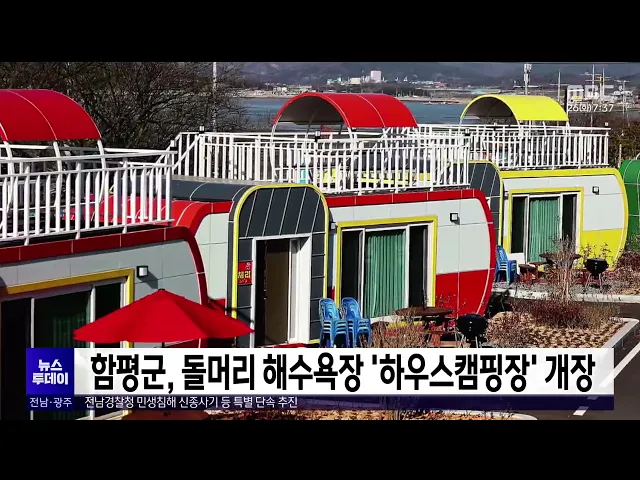 함평군은 돌머리 해수욕장 귀촌빌리지를'하우스캠핑장'으로 이름을 바꾸고정식 운영에 나섰습니다. '하우스캠핑장'은 4천여 제곱미터 부지에사업비 5억6천만 원을 투입해 숙박시설 8개동과 오토카라반, 글램핑 캠핑장 등 시설이 조성됐습니다. 함평군은 하우스캠핑장을 통해주민 정주여건 개선과 대표 관광지 조성 등을...