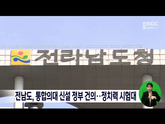 전라남도가 정부에 전남 통합의대 신설을 공식 건의했습니다.김영록 전남지사는2025학년도 의대 정원 2000명 증원 계획에전남의대 신설을 포함시켜 달라는 내용의'전남 통합의대 신설안'을 어제(18)교육부와 보건복지부에 정식 건의했다고밝혔습니다.하지만 전남 동서부권에서통합의대와 단독의대 유치론이 최근 엇갈리게 ...