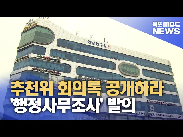 ◀ 앵 커 ▶최근 전남연구원장 선임이 무산됐는데요.공모와 심사과정에서 여러가지 의혹이 제기되고있습니다.전남도의회가 연구원장 추천위원회 회의록 공개와 함께 행정조사권 발의도 의결했습니다.김양훈 기자가 취재했습니다.◀ 리포트 ▶전남연구원장 후보자 3명에 대한 채점표입니다.평가자 6명은 후보자들에게 대부분 60...