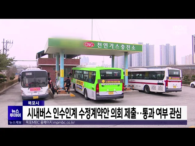 목포시가 시의회에 제출한 시내버스 인수인계 수정 계약안이 이번 임시회에서 통과여부가 주목받고 있습니다. 목포시는 시의회의 권고에 따라 협상단을 구성해 태원유진운수와 인수인계 추가협상을 벌였지만 노선권 감정평가금액 2백10억 원과 시내버스 운영 인프라인 차고지와 정비시설, CNG충전소 등의 기부채납 문제에...
