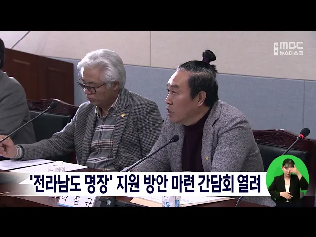 전라남도 명장 지원 방안 마련을 위한간담회가 전남도의회에서 열렸습니다.나광국 전남도의원 주최로 열린 이번 간담회에서는 전라남도 명장과 관계 공무원 등이 참석해 명장들의 애로사항을수렴하고 이를 돕기 위한 실질적인 지원 방안 등을 공유했습니다.'전라남도 명장'이란 도내 생산,제조,서비스 분야에서 오랜기간종...